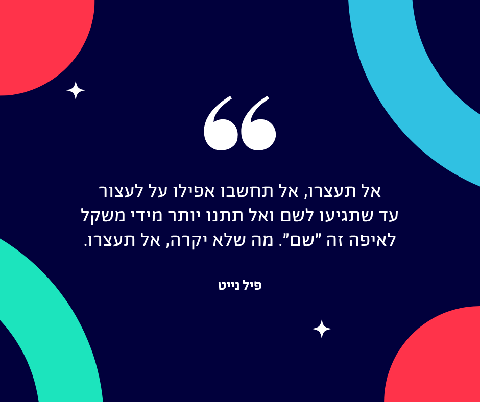 ״אל תעצרו, אל תחשבו אפילו על לעצור עד שתגיעו לשם ואל תתנו יותר מידי משקל לאיפה זה ״שם״. מה שלא יקרה, אל תעצרו.״