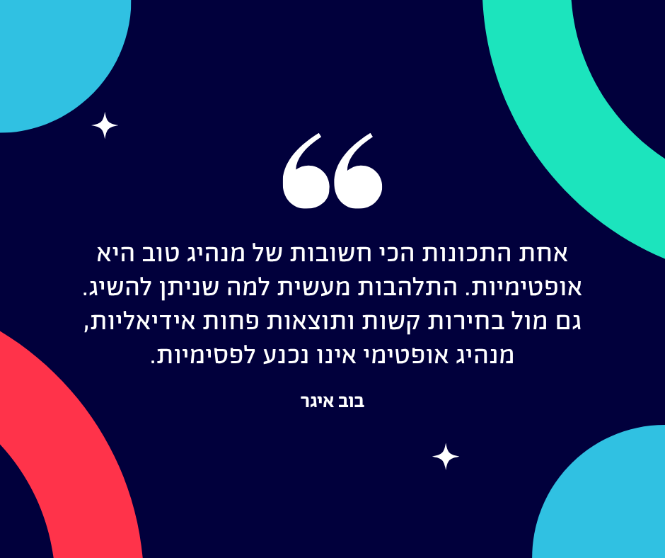 גם מול בחירות קשות ותוצאות פחות אידיאליות, מנהיג אופטימי אינו נכנע לפסימיות.״