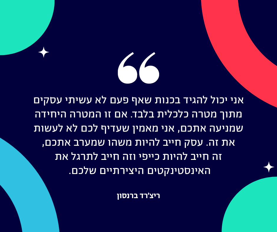 עסק חייב להיות משהו שמערב אתכם, זה חייב להיות כייפי וזה חייב לתרגל את האינסטינקטים היצירתיים שלכם.