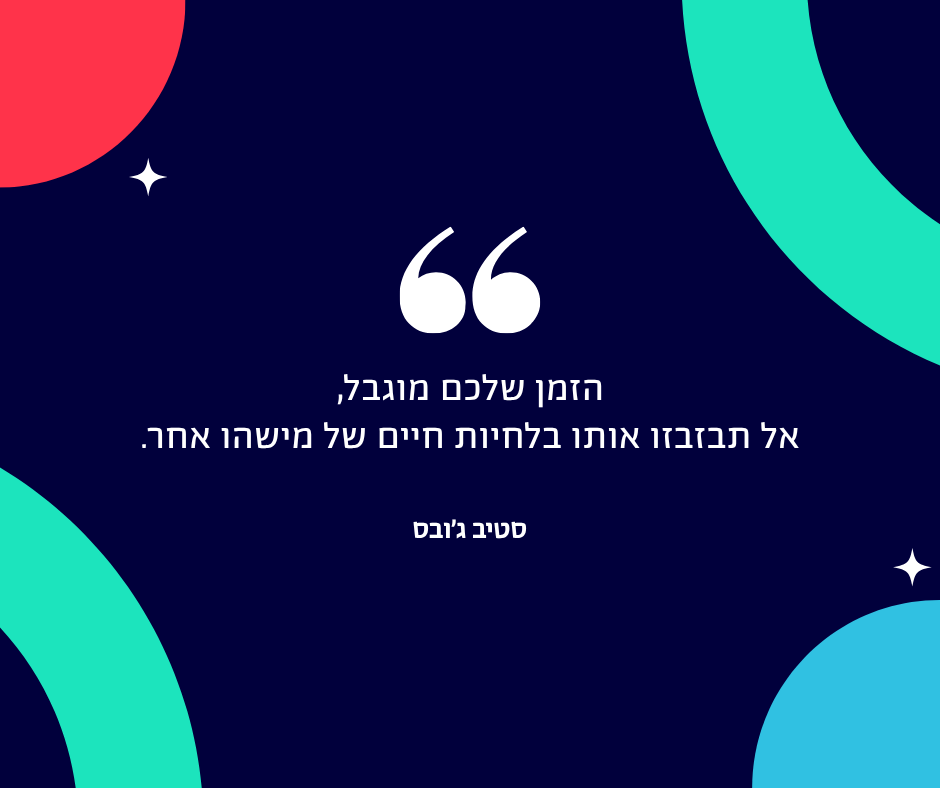 ״הזמן שלכם מוגבל, אל תבזבזו אותו בלחיות חיים של מישהו אחר.״