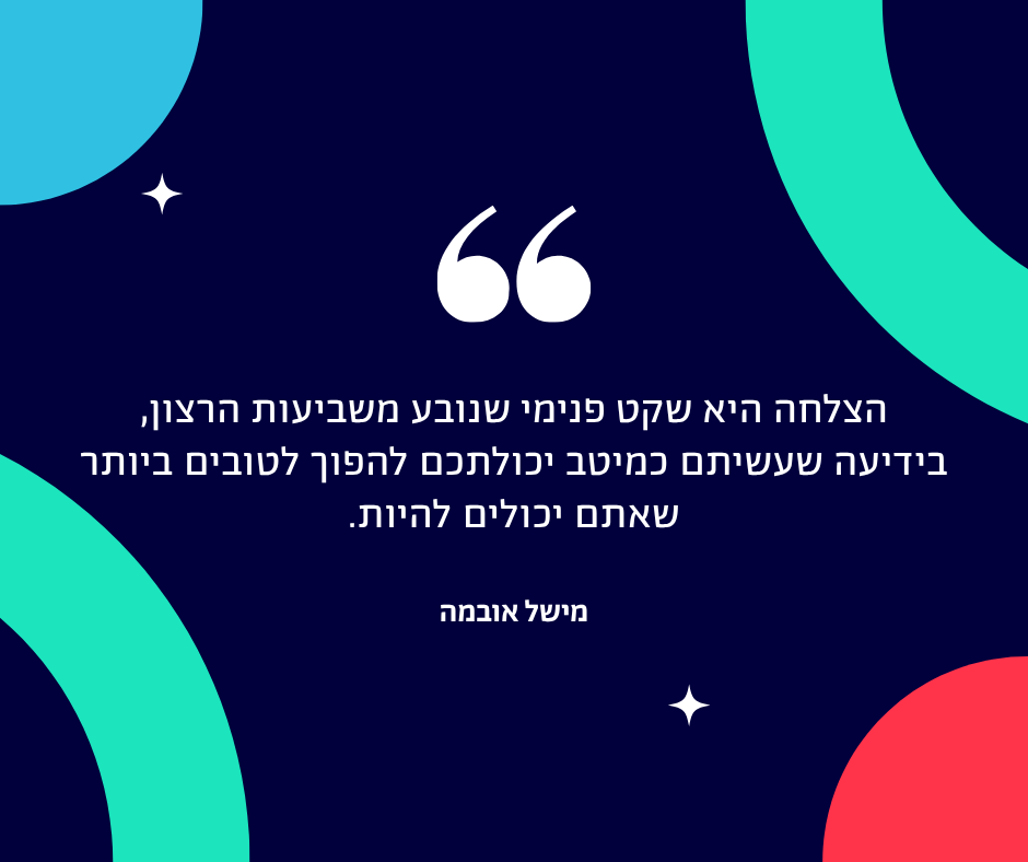 הצלחה היא שקט פנימי שנובע משביעות הרצון, בידיעה שעשיתם כמיטב יכולתכם להפוך לטובים ביותר שאתם יכולים להיות